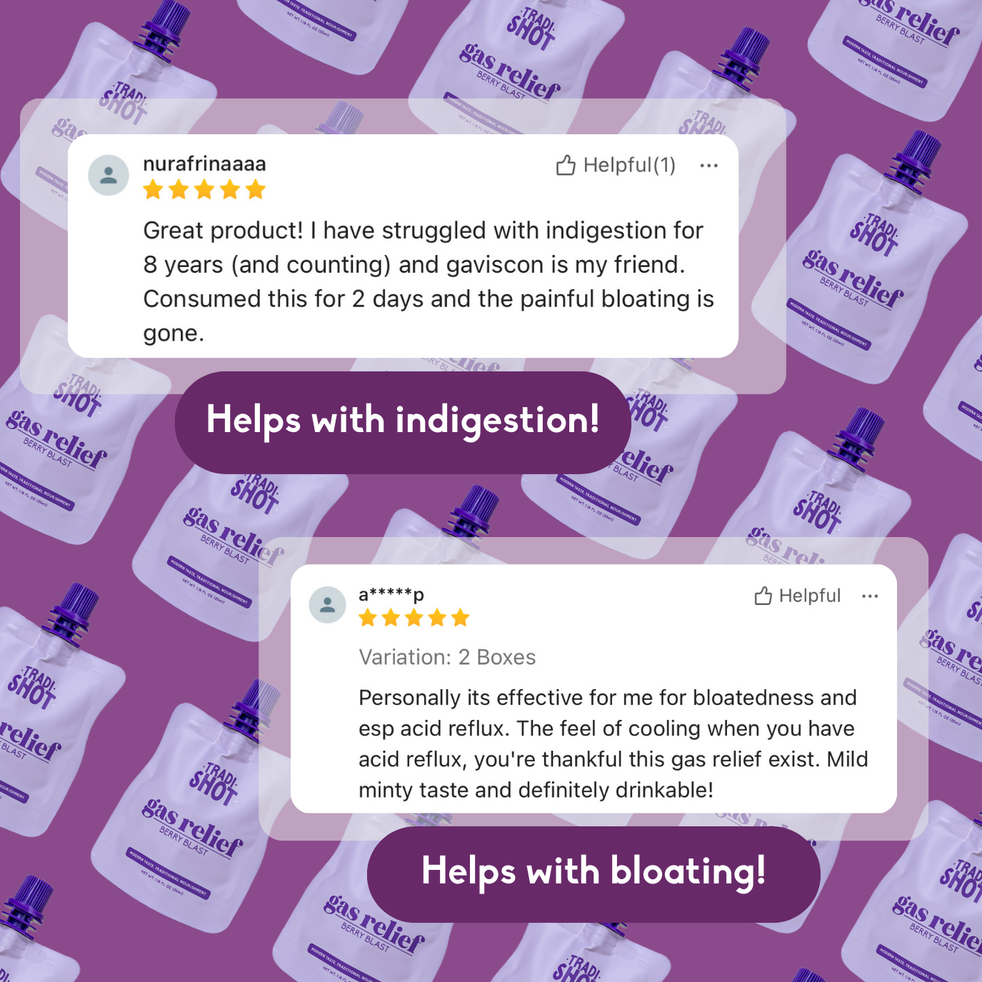 Gentle on the stomach yet effective in providing relief, Tradishot Gas Relief is suitable for daily use to maintain digestive comfort and ease.